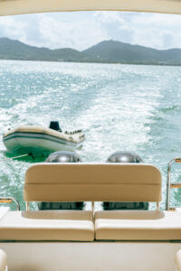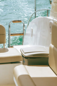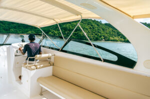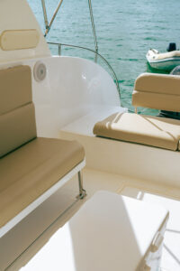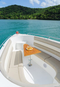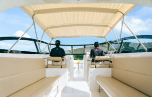 На борту Aqua 37 предусмотрены все удобства для морского путешествия. Мягкие кожаные сидения обеспечивают комфорт для всех гостей, а удобный спуск в воду позволяет легко погружаться в морские глубины или просто искупаться в прохладных водах. На носу катера расположен столик, который станет отличным местом для уютных бесед или легкого перекуса во время путешествия.