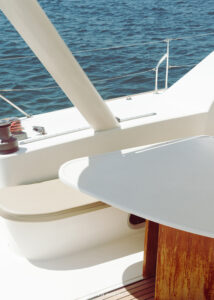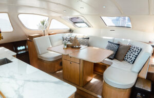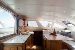 Catana 47 Blue Indigo – это представитель лимитированной серии двухкорпусных яхт, созданных с учетом высоких стандартов качества и комфорта. Интерьеры внутренних помещений этой яхты отличаются лаконичным, но уютным дизайном. В сравнении с роскошными «виллами на воде» типа яхт Lagoon, здесь может показаться немного меньше жилого пространства, но по сравнению с однокорпусными судами сопоставимой длины, места здесь значительно больше.