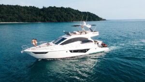 Модель 58 входит в линейку яхт Cranchi от 26 до 78 футов, и по совокупности параметров обеспечивает удобство, простор и хорошую скорость. Выбирая Cranchi 58 для маршрутов около Пхукета, вы получаете возможность быстро и комфортно добраться до таких мест, как острова Рача, Корал, Кхай и Майтон, при этом наслаждаться отдыхом на борту с полной экипировкой развлечений.