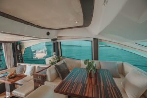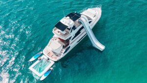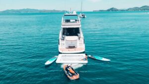 Моторная яхта Cranchi 58 – это стильное и комфортное судно, готовое для приватного однодневного чартера вокруг Пхукета. На борту предусмотрено много развлечений: оборудование для сноркелинга и рыбалки, ватрушка, падлборд, гидравлическая платформа для купания, один Jet Ski, водный бассейн, полотенца, Indoor & Outdoor звуковая система и динги — всё для активного и расслабленного отдыха на море.