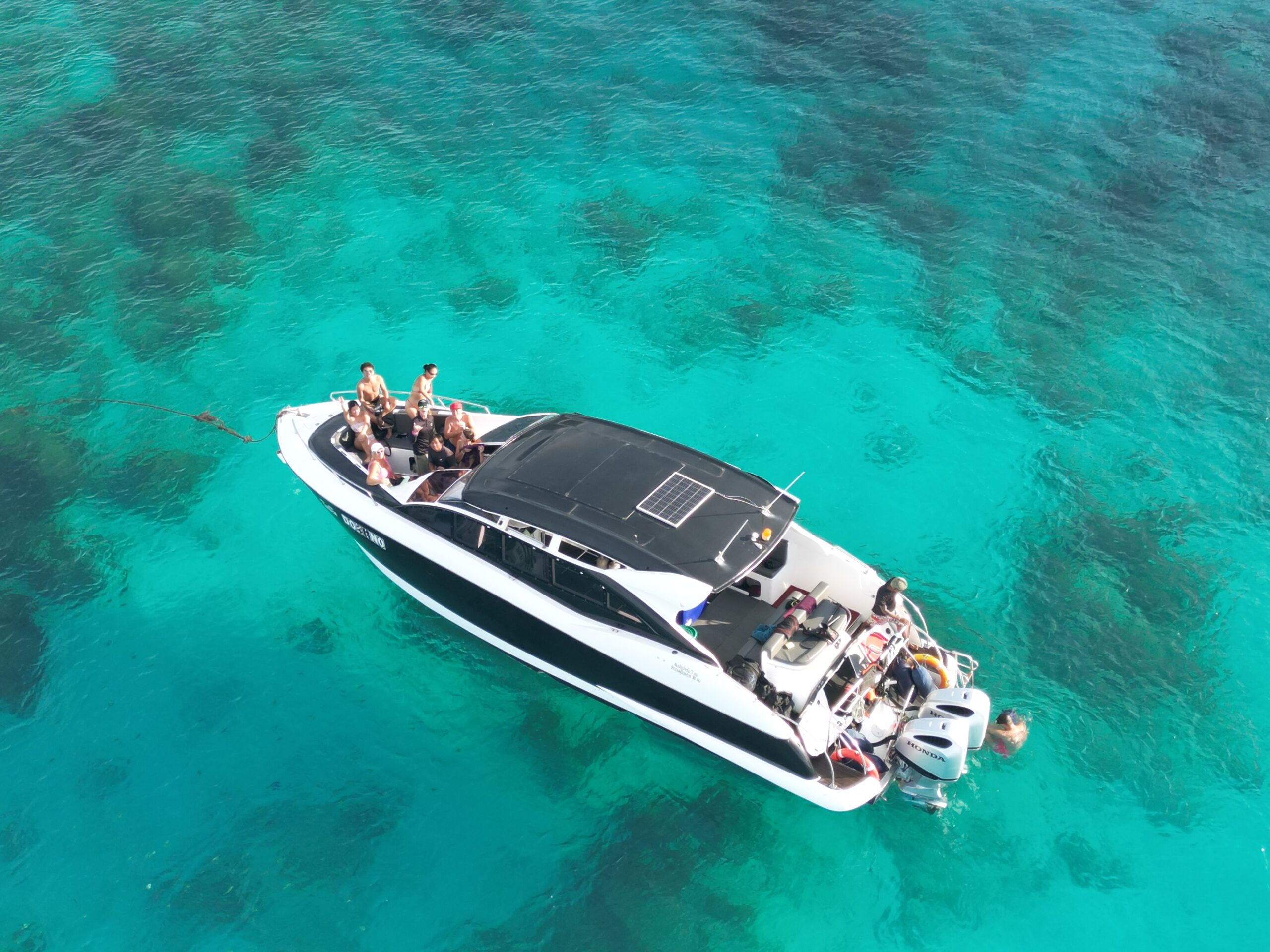 Скоростной катер Domino – это катер длиной 38 футов сделан из стекловолокна и оснащён двумя мощными двигателями. Благодаря этому он может легко развивать скорость до 30 узлов, быстро доставляя вас куда угодно по Андаманскому морю. На борту есть всё для удобства: мягкие сиденья из кожи, столик для уютных обедов, туалет, душ с пресной водой и лёгкий доступ к воде для купания. Если вы хотите попробовать дайвинг, мы можем предоставить необходимое снаряжение.