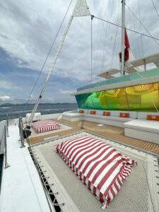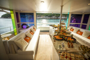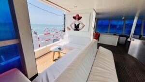 На борту яхты Farnova 55 Super-X вы также можете попробовать свои силы в управлении Jet Fly за дополнительную плату и прокатиться по синеве моря, добавив немного адреналина к вашему морскому приключению.