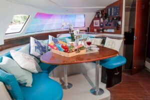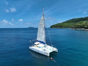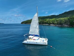 Fountaine Pajot Lavezzi 40 — это удобный катамаран, подходящий для однодневных чартеров вблизи Пхукета. Этот катамаран отличается своей функциональностью и достаточным пространством для комфортного проведения времени на воде для группы людей.