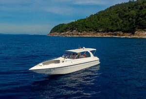 Катер Gambit – это прекрасный выбор для тех, кто хочет насладиться морем в кругу большой компании, поскольку может принять на борт до 24 человек. С длиной в 11 метров и оснащенный двумя моторами, этот катер обладает круизной скоростью 30 узлов, что позволяет быстро и комфортно передвигаться по водной глади.