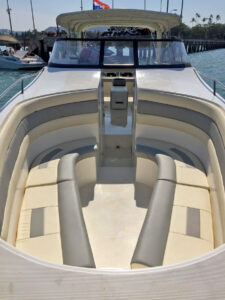 На борту Gambit вы найдете мягкие сидения, обеспечивающие удобство во время вашего путешествия, а также удобный спуск в воду для тех, кто желает искупаться или заняться снорклингом. Открытая носовая часть катера позволяет гостям наслаждаться солнечными ваннами в пути, в то время как крытый корпус предлагает защиту от палящего солнца, создавая комфортные условия для отдыха.