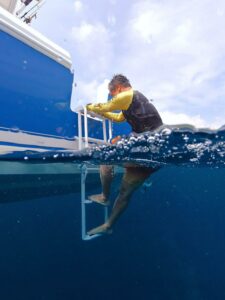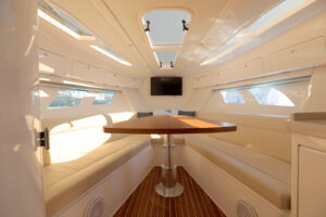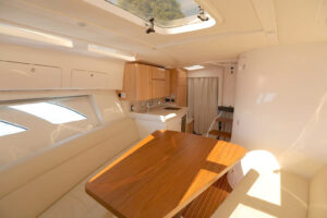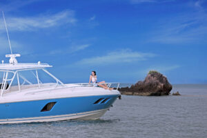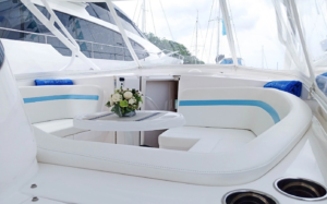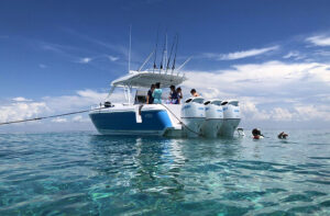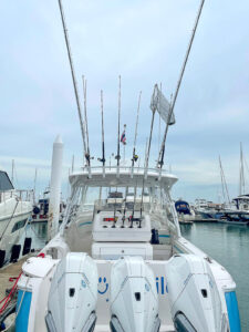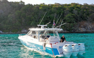 На борту имеются удобные платформы для спуска в воду и подъема обратно, а также оборудование для хранения и использования рыболовных снастей. Это делает лодку многофункциональной и подходящей для различных видов водного спорта и отдыха. Кроме того, на борту Interpid 407 Cuddy Blue Smile находится каюта с ванной комнатой, предлагающая комфорт для гостей во время дневных круизов. Это добавляет дополнительное удобство.