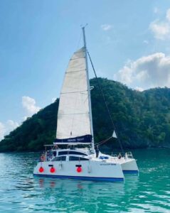 Island Spirit 400 — это базовый катамаран, отлично подходящий для однодневных чартеров для акватории вокруг Пхукета. Этот катамаран предназначен для тех, кто ищет простое и функциональное судно для коротких морских поездок. Модель катамарана позволяет гостям насладиться морем и солнцем благодаря его открытой планировке, которая включает комфортные места для сидения и легкий доступ к воде для купания и сноркелинга.