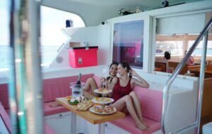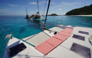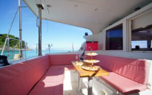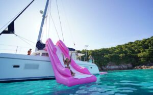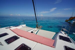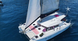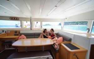 Lagoon 421 — это комфортабельный парусный катамаран, который подходит для приватных морских прогулок вокруг Пхукета. Он хорошо подойдёт для однодневных туров с семьёй или друзьями. На борту достаточно места для отдыха, обеда и плавания, как на открытой палубе, так и внутри салона. Катамаран оснащён просторным кокпитом, удобной зоной для загара и крытым салоном, где можно укрыться от солнца. Внутри есть всё необходимое для комфортного отдыха: мягкие диваны, обеденная зона и несколько кают для тех, кто остаётся на ночь.