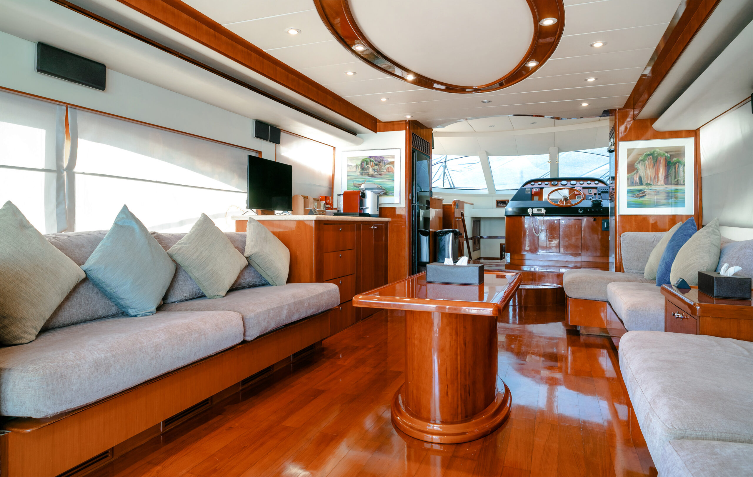 Моторная яхта Lamberti 80 – отличный выбор для приватного чартера вокруг Пхукета. Она рассчитана на комфортное размещение гостей и предлагает всё необходимое для приятного отдыха на воде. На борту просторный салон и палуба для отдыха. Для удобства на борту есть гидравлическая платформа для купания, падлборд, ватрушка, сноркелинг и рыбалка.