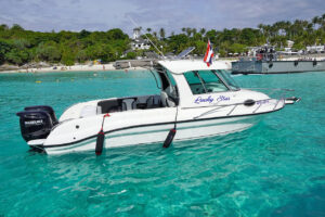 Atomix 705 – это скоростной катер новозеландского бренда, предоставляющий уникальные возможности для индивидуальных прогулок по ближайшим островам. С его длиной 7,2 метра и шириной 2,4 метра, двумя подвесными моторами Suzuki этот катер обеспечит вам морскую свободу.