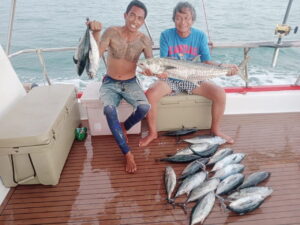 Рыбалка проходит методом троллинга, а выловленную рыбу можно использовать для приготовления свежего сашими прямо на борту! Это уникальная возможность не только насладиться рыбалкой, но и попробовать свежайшую рыбу. Для тех, кто предпочитает не рыбачить, на лодке есть открытая палуба, где можно расслабиться и насладиться солнцем. Также предоставляются маски для снорклинга, чтобы вы могли исследовать подводный мир вокруг.