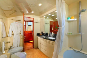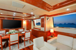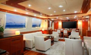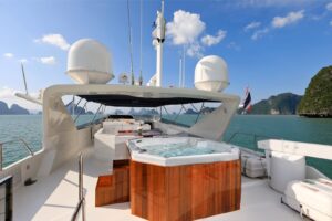 Falcon 106 предлагает комфортное размещение до 10 гостей. В её пяти каютах, включая главную спальню и две VIP-каюты, царит атмосфера роскоши и уюта. Каждая каюта оборудована собственной ванной, что обеспечивает приватность и комфорт. На флайбридже расположено джакузи, предлагающее расслабление среди морских просторов. Столовая на свежем воздухе на кормовой палубе и зона отдыха на носовой палубе – идеальные места для ужинов на закате и наслаждения панорамными видами. Шесть профессиональных членов экипажа гарантируют безопасность и высокий уровень сервиса. Они обеспечивают комфортный и роскошный отдых на яхте, делая каждую поездку неповторимой. Falcon 106 – это не просто яхта, это место для идеального отдыха и развлечений с семьей или друзьями, где каждая деталь подчеркивает её исключительность.