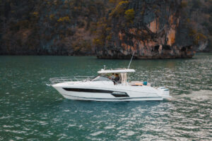 Jeanneau Cap Camarat 12.5 WA — это моторная яхта, подходящая для приватных однодневных путешествий по акватории Пхукета. Модель 2024 года, рассчитана на комфортную поездку до 6 гостей (максимум — 8 человек). Удобный и современный дизайн, два закрытых каютных помещения и санузел позволяют отдохнуть в тени или уединиться во время перерывов между купаниями или прогулками.