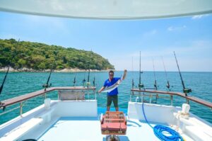 Троллер Phoenix-2 – рыболовная лодка длиной 19,5 метров. Она идеально подходит для тех, кто хочет поехать на троллинговую рыбалку рядом с Пхукетом. На этой лодке вы сможете отправиться в путешествие к островам Рача Яй, Рача Ной, Корал, Майтон для однодневной рыбалки, а также в район Пхи Пхи, если хотите остаться на ночь.