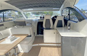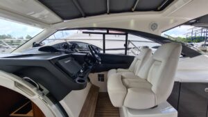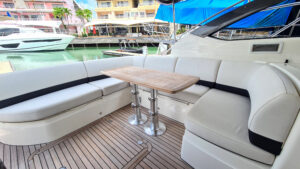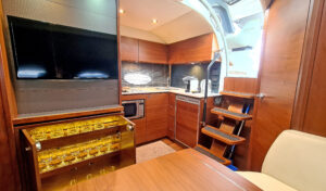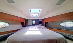 Princess V39 — это открытая круизная яхта длиной 13 м, функциональная конструкция с большой плавательной платформой и удобными зонами отдыха. На носу яхты предусмотрены мягкие лежаки для загара. Большой люк в крыше поможет превратить салон в открытое, залитое светом пространство. На нижней палубе располагаются каюты, камбуз и обеденная зона.