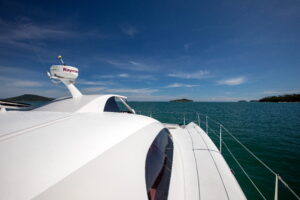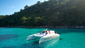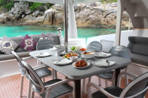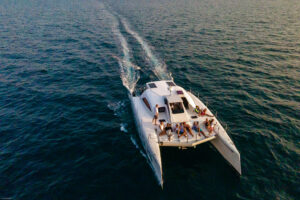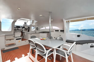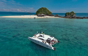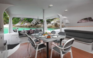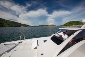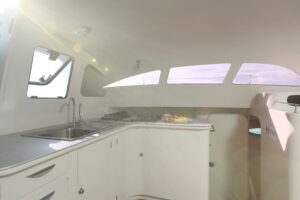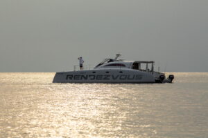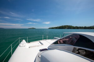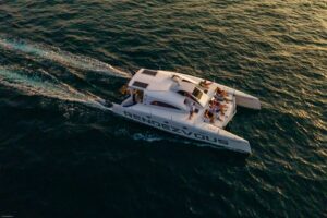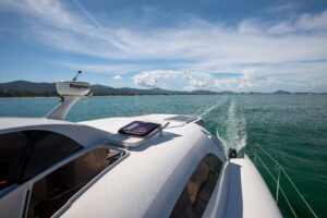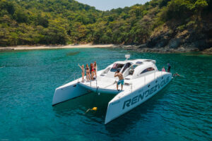 С двумя 60-л.с. подвесными моторами Rendezvous обеспечивает экономичность и скорость до 28 узлов. Эти катамараны, построенные с применением вспененного эпоксидного стеклопластика с углеродными вставками, предлагают открытый дизайн с эффективной вентиляцией, идеальный для плавания в тропическом регионе. Благодаря центральному штурвалу водитель обеспечивает безопасность и маневренность с прекрасным видом на всю лодку. Rendezvous — это не просто катамаран, это симбиоз надежности и комфорта от Asia Catamarans.