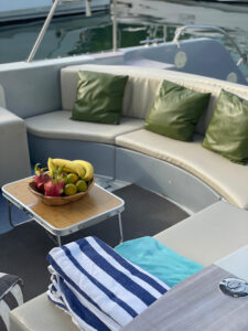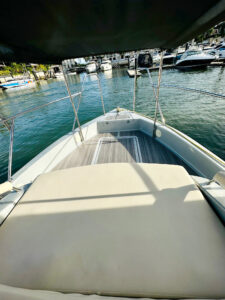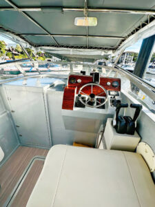 Srisuwan 37 – это элегантный спортивный круизер длиной 37 футов. Оснащен двумя мощными моторами Yamaha, которые обеспечивают круизную скорость до 28 узлов. На борту имеется система навигации и система идентификации и обнаружения судов AIS, обеспечивающие безопасность и точность плавания.