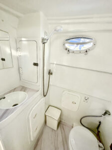 На борту Srisuwan 37 вы найдете все необходимое для приятного путешествия: небольшая каюта для отдыха, компактный, но функциональный туалет и душ, оборудование для плавания с маской и трубкой Эта лодка подходит как для коротких выездов, так и для более продолжительных морских приключений.