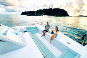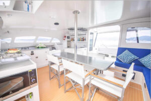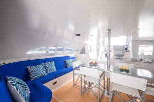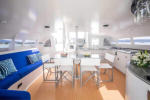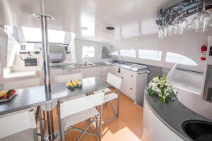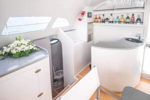 Благодаря своей легкости и мощности, яхта способна развивать максимальную скорость до 23 узлов, позволяя пассажирам исследовать больше за один день, наслаждаяcь морскими просторами. Конструкция катамарана продумана так, чтобы оптимизировать пространство для максимального комфорта, обеспечить скорость и гарантировать универсальность использования. Просторный флайбридж и современно оборудованные жилые помещения обеспечивают должный уровень комфорта и релаксации во время путешествий. На борту Stealth 47 вы найдете все необходимые удобства, от высокоскоростного Wi-Fi до обширного ассортимента водного спортивного инвентаря, включая каяки, падлборд и другое, что позволит отдыхать на воде активно.
