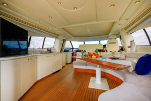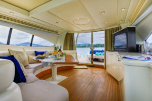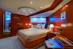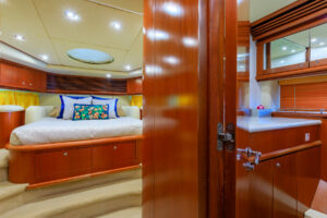 На борту этого Sunseeker Predator 80 есть три роскошные каюты, которые могут уютно разместить до 6 человек. Все они оснащены системой кондиционирования воздуха, что обеспечивает комфортное пребывание в любое время года.