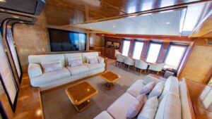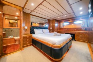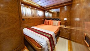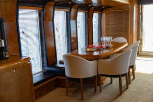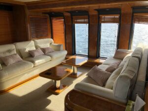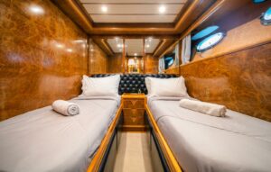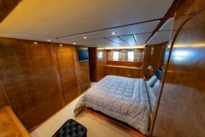 Яхта располагает четырьмя роскошными каютами, включая VIP-каюту и мастер-каюту, гарантируя высочайший уровень комфорта для 8 гостей в течение ночного чартера и до 30 гостей в дневное время. Стильный дизайн интерьера, эргономика пространства и изысканная мебель сотворяют атмосферу невероятного уюта. Флайбридж с крытым навесом-бимини и дополнительным постом управления предоставляет уникальные виды на окружающие пейзажи.