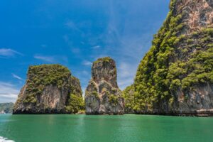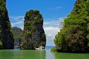 Острова и скалы залива, покрытые пышной зеленью, создают неповторимый ландшафт. Особое место среди них занимают острова Джеймса Бонда, получившие свою известность благодаря съемкам культового фильма «Человек с золотым пистолетом». Эти два небольших острова привлекают туристов со всего мира, желающих прикоснуться к истории кино и сделать фото на фоне скалы торчащей из воды.